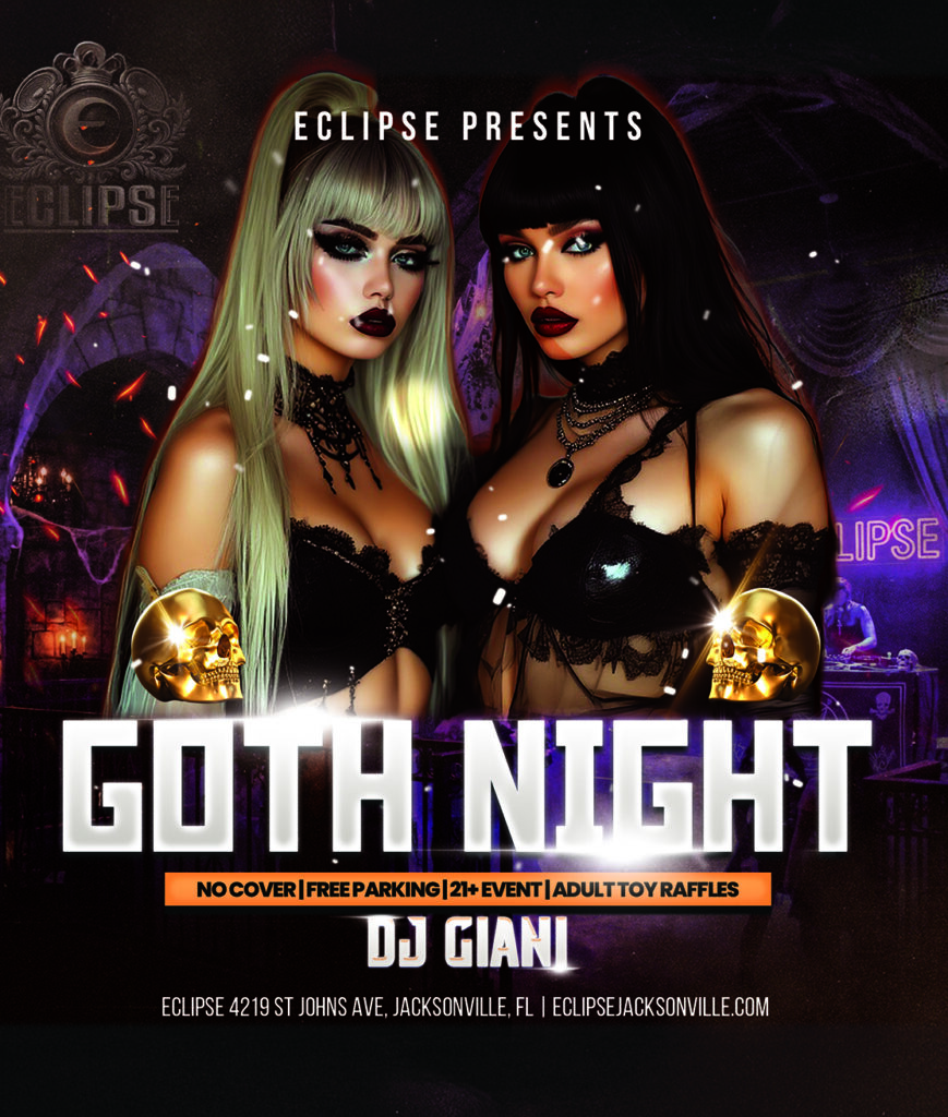 Every 2nd SaturdayEclipse Presents: Goth Night Embrace the darkness at Eclipse for an exclusive 21+ Goth Night event featuring the sounds of DJ Giani. Enjoy a night out with no cover charge and free parking. The evening will also feature exciting adult toy raffles. Location: Eclipse - 4219 St Johns Ave,