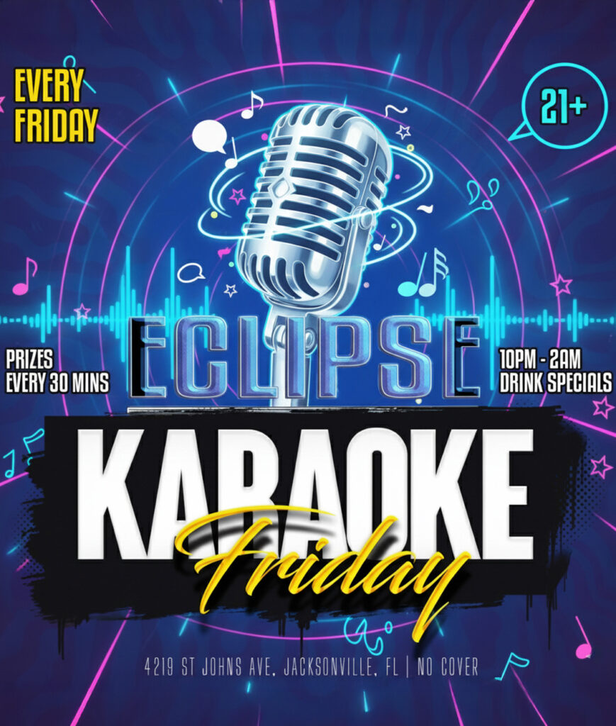 Since opening our doors in Jacksonville’s Riverside neighborhood, Eclipse Bar & Nightclub has become the city’s premier venue for those seeking genuine nightlife experiences. We pride ourselves in offering the best Karaoke in Jacksonville every Friday night!